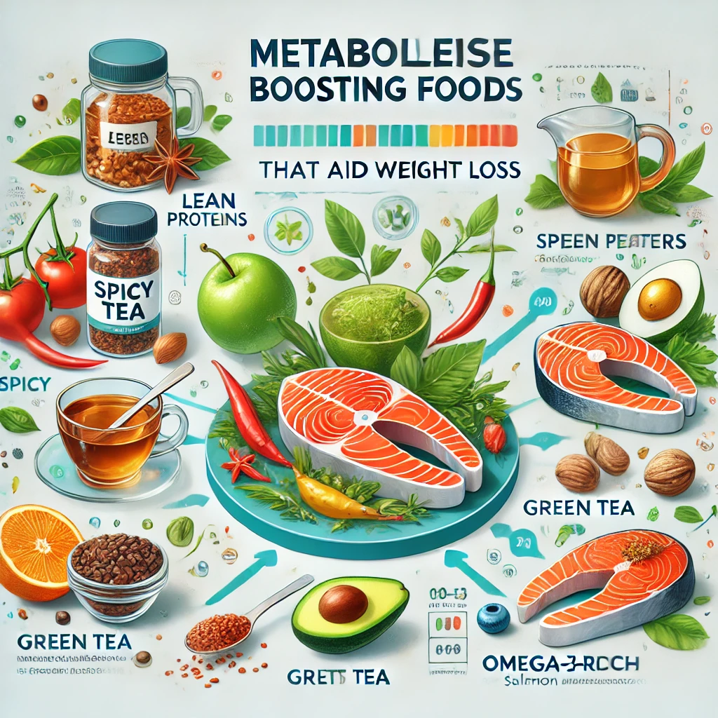 특정 음식은 신진대사를 활성화하여 체지방 연소를 돕습니다. 매운 음식, 녹차, 오메가-3 지방산이 풍부한 식품을 섭취하면 **열량 소모율이 증가**합니다.